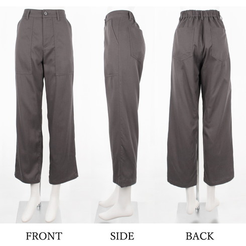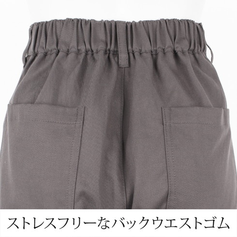 ウエストフロント部分はすっきり、後ろはゴム仕様で履き心地も◎。