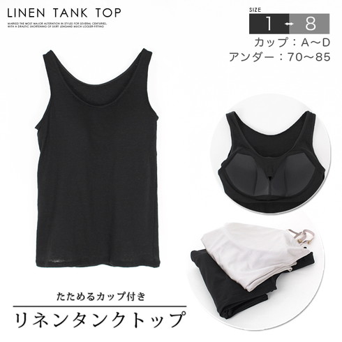 さらりと快適なリネン素材のカップ付きタンクトップです。