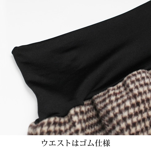 ウエスト部分はゴム仕様で楽ちん、胸下から浅履きまで長さをアレンジ可能。