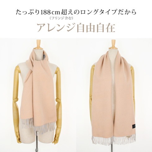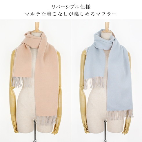 ふんわりとした質感のカシミア混素材のリバーシブルマフラーです。