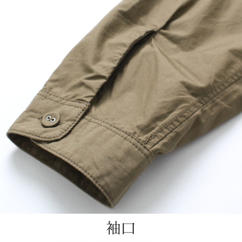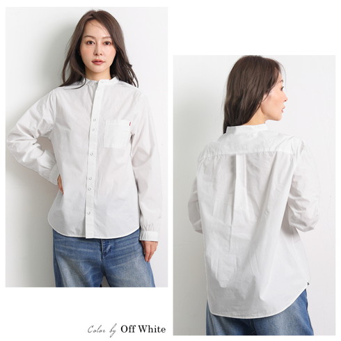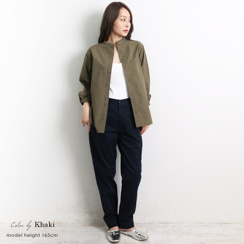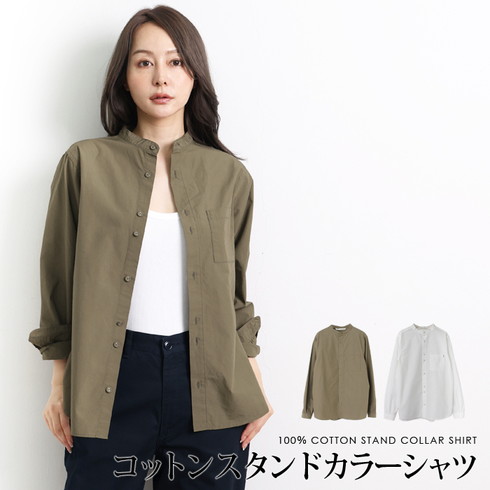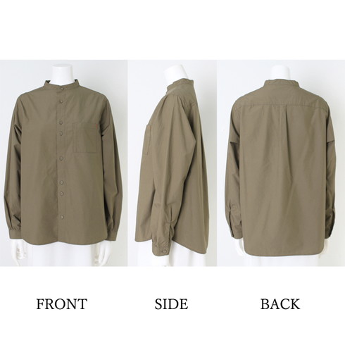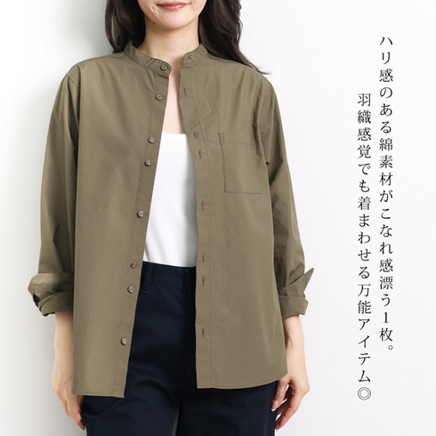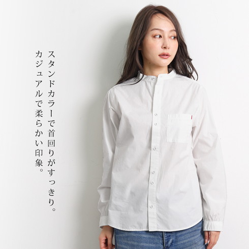 綿100%素材の長袖スタンドカラーシャツです。