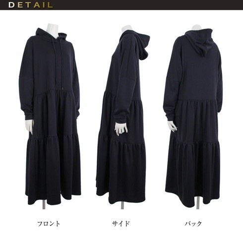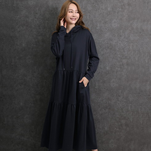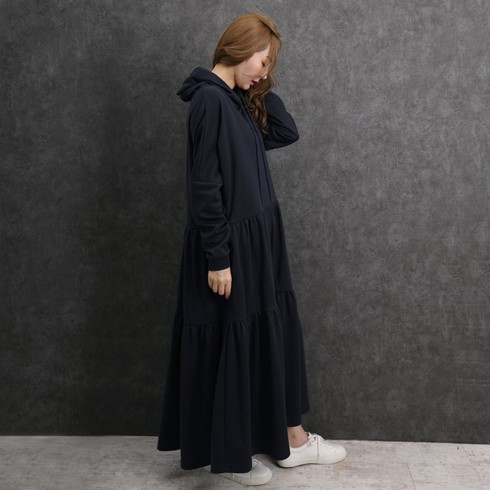 シンプルに仕上げたパーカーワンピースは