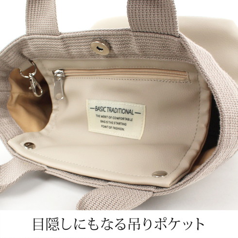 幅広いシーンで活躍するソフト素材の舟形ミニトートバッグです。