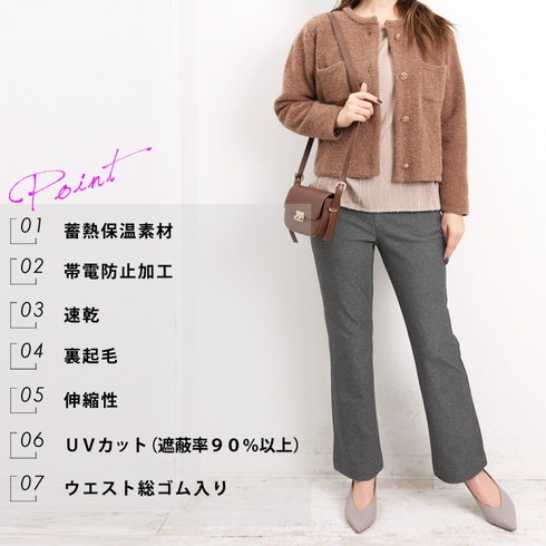 蓄熱裏起毛素材のあったかストレッチパンツです。
