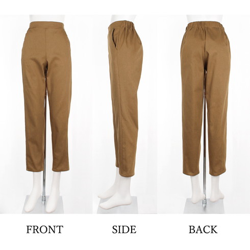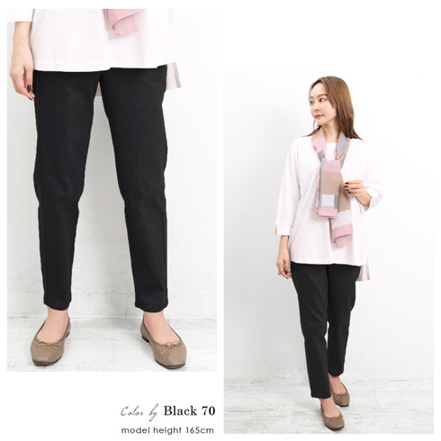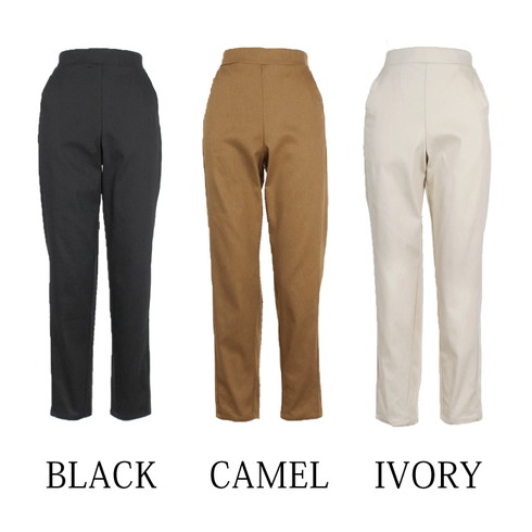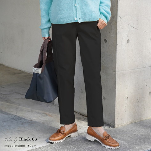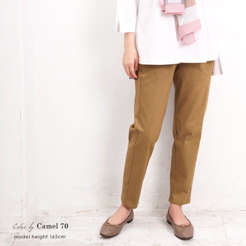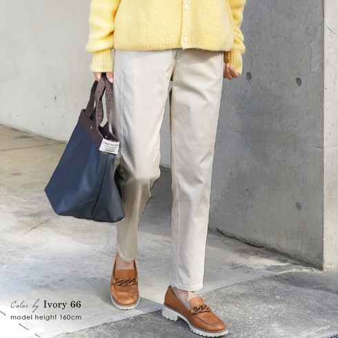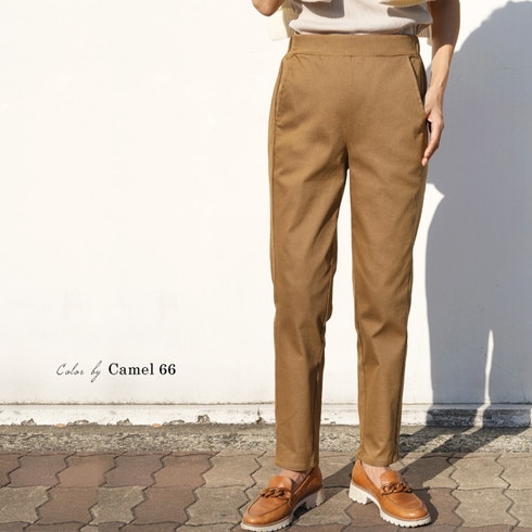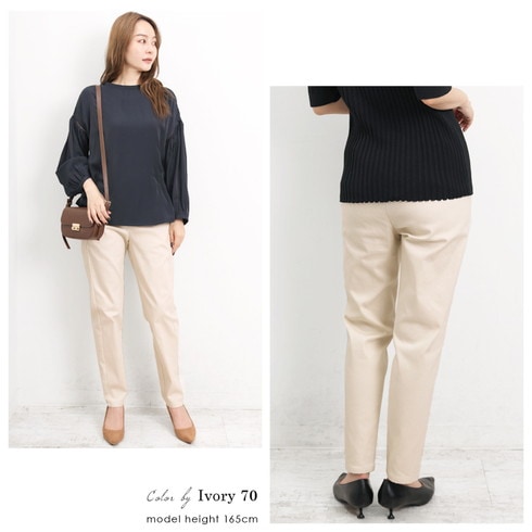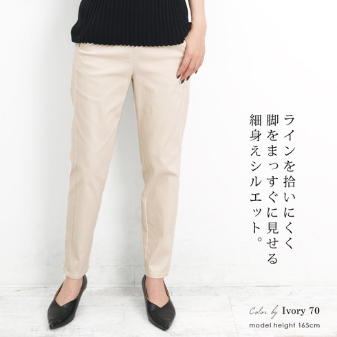 美脚を叶える綿混のテーパードスリムパンツです。