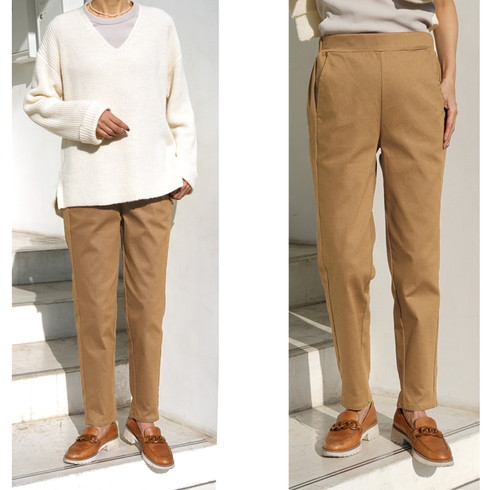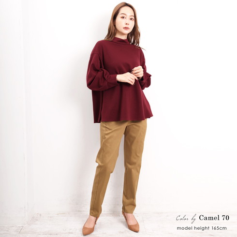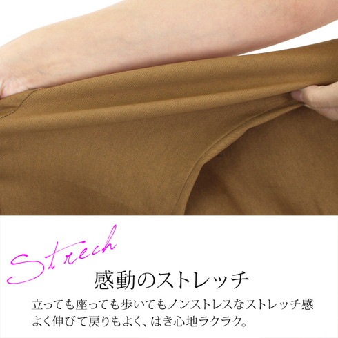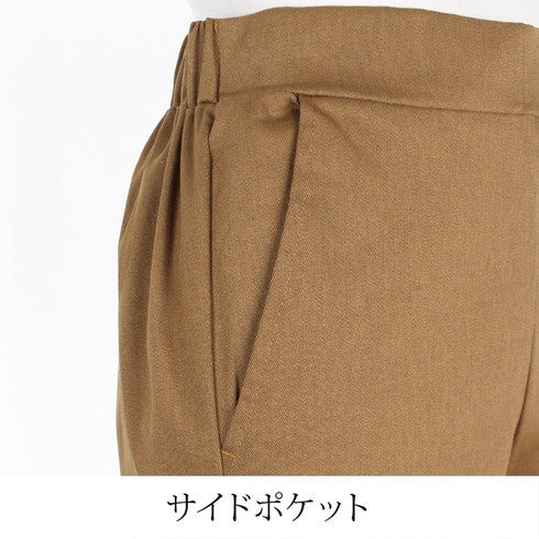 ウエストはゴム仕様、ストレッチ生地でストレスフリーな履き心地。
