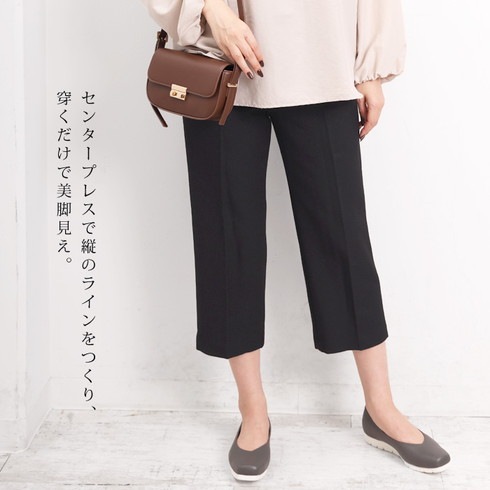 センタープレス入りテーパードラインが美脚脚長効果抜群です。