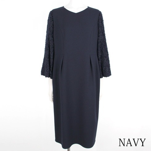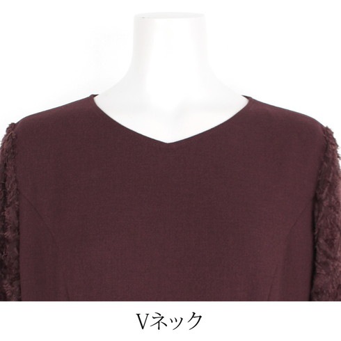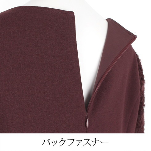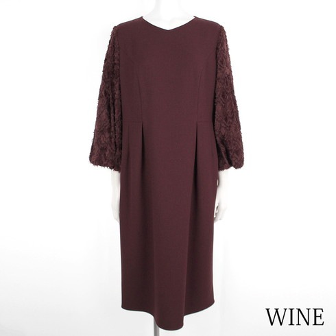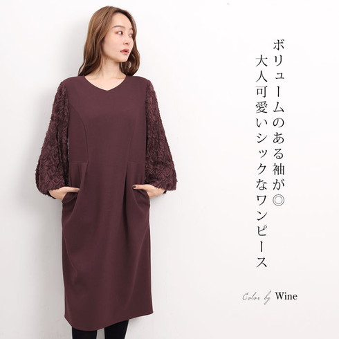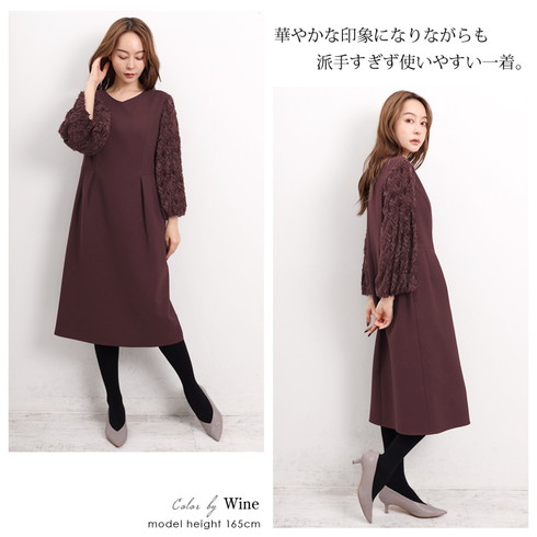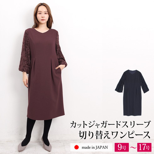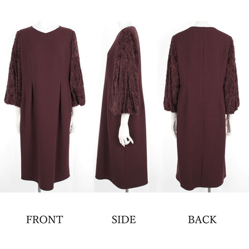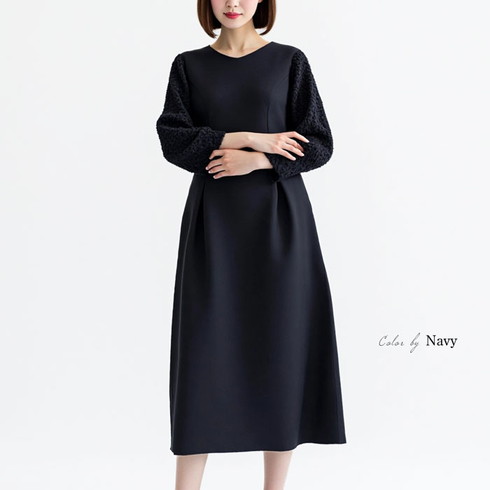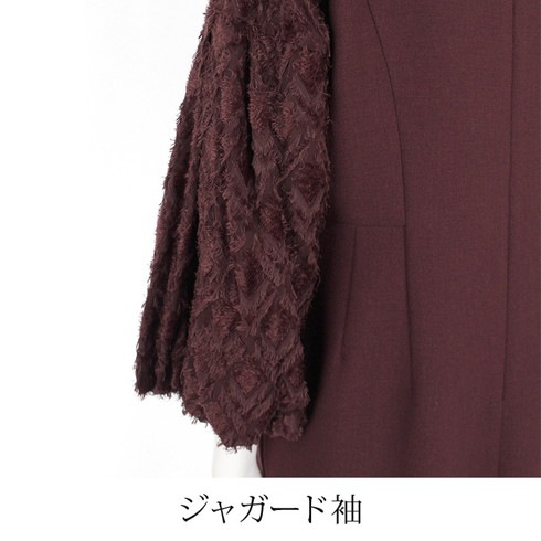 カットジャガード袖がエレガントな長袖ワンピースです。
