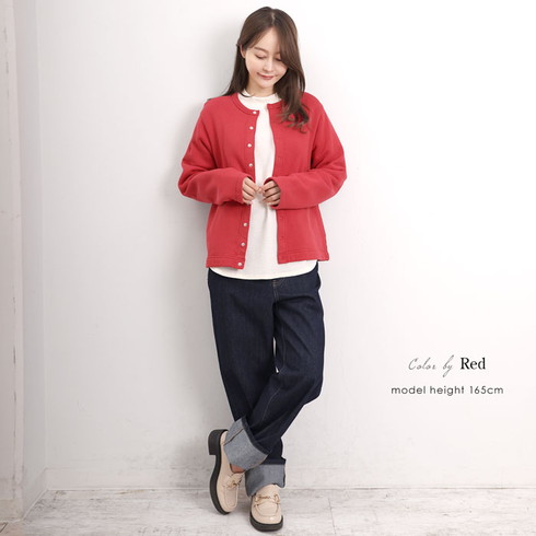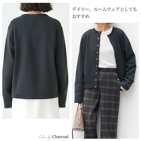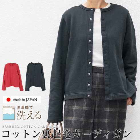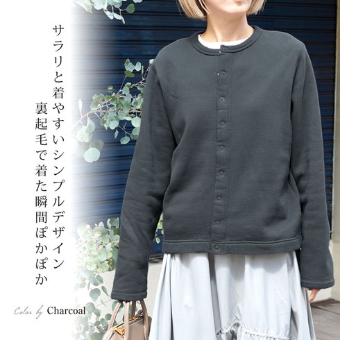 寒い日にさっと羽織れるあったか裏起毛素材のカーディガンです。