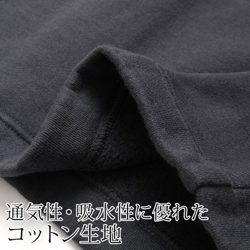 日本製綿100%の裏起毛素材なので柔らかくふんわりとした肌触りが魅力。