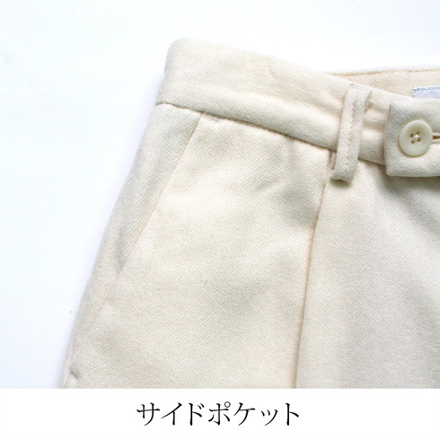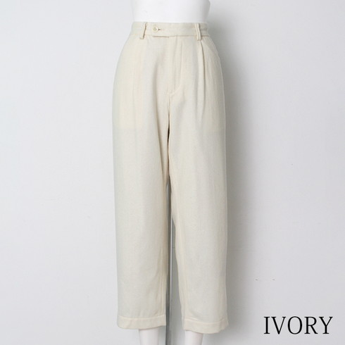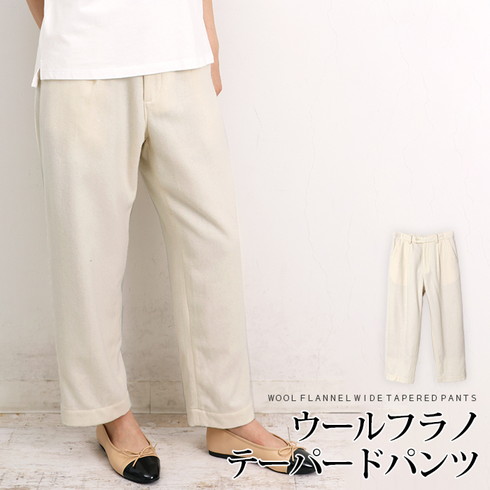 暖かみのあるウールフラノ素材のテーパードパンツです。