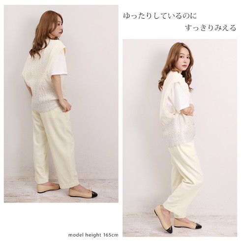 フロントにタックを入れ気になる腰回りはゆったりと体型カバー。