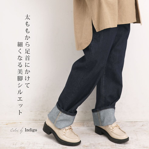 着回しやすさ抜群のテーパードデニムパンツです。
