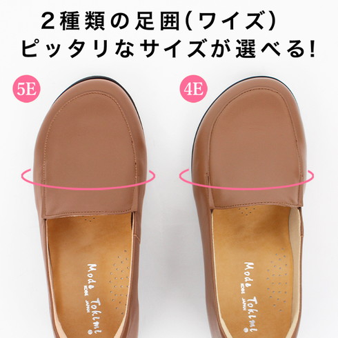 幅はゆったり目(4E/5E)で甲高・幅広の足の方でも履きやすい。