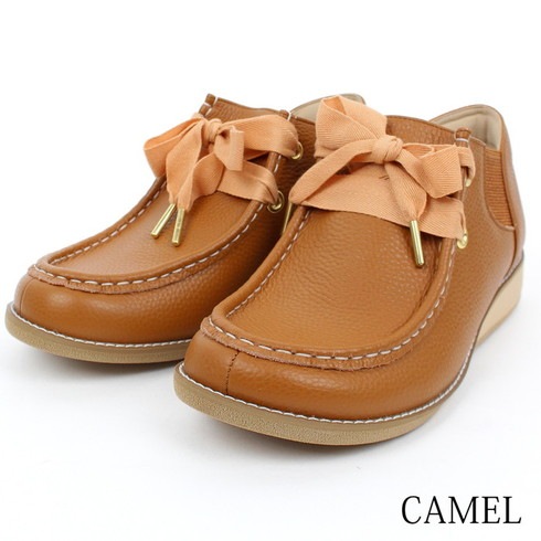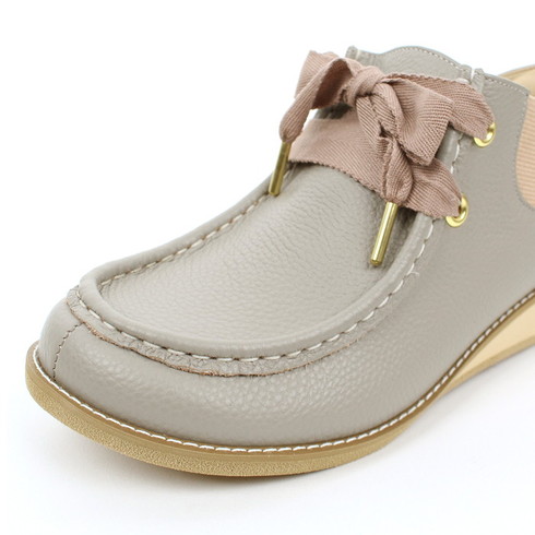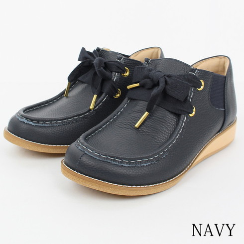 シンプルデザインの中で大きめのリボンシューレースがアクセントに。