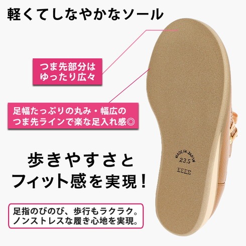 つま先部分がたっぷり広々設計のため歩きやすさは抜群。