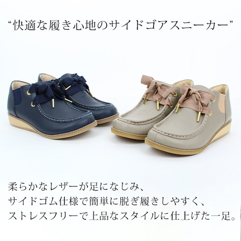 サイドゴア仕様によりスムーズな着脱、快適なフィット感。