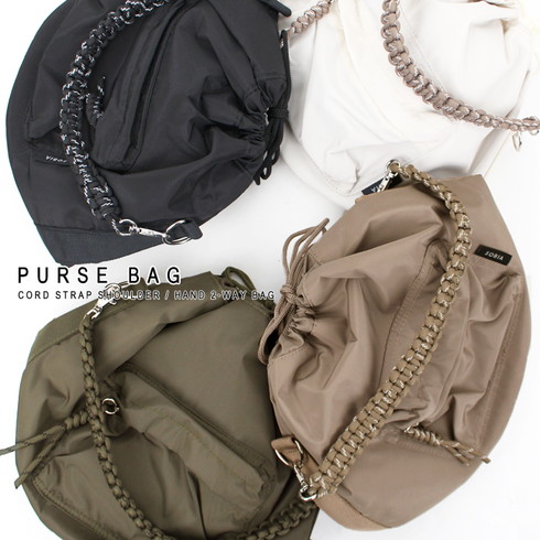 コードハンドルがアクセントになったショルダーバッグです。