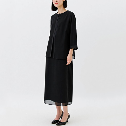 上質な素材と着心地が特徴の大人見えするブラックフォーマルです。