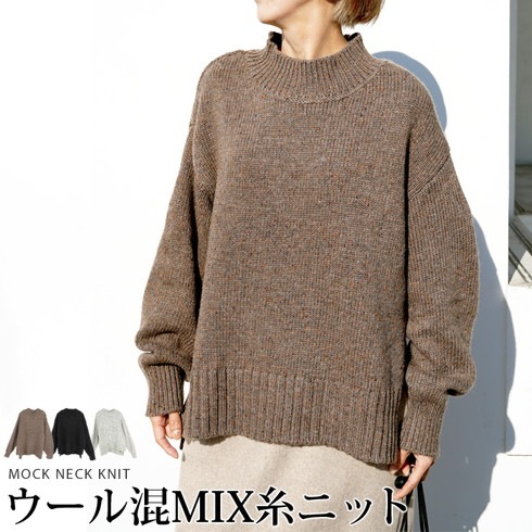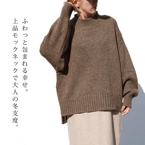 ざっくり感が大人かわいいモックネックニットです。