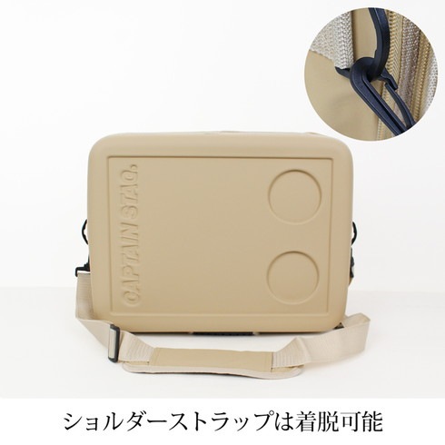 持ち運びやすいショルダーベルト付きのクーラーバッグです。