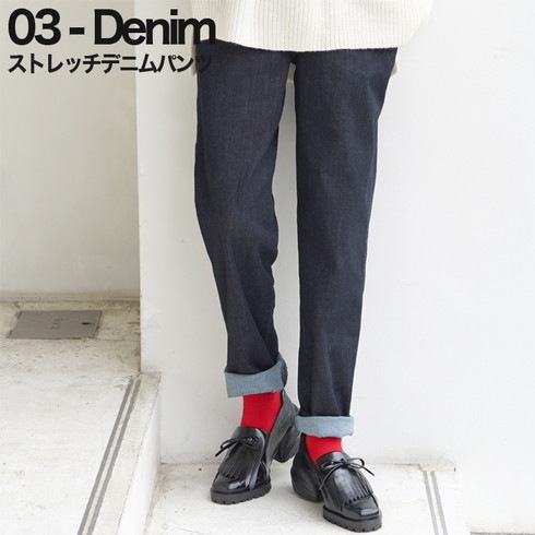●デニムテーパードパンツ