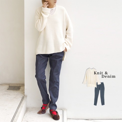 ●アルパカ混Vネックニット