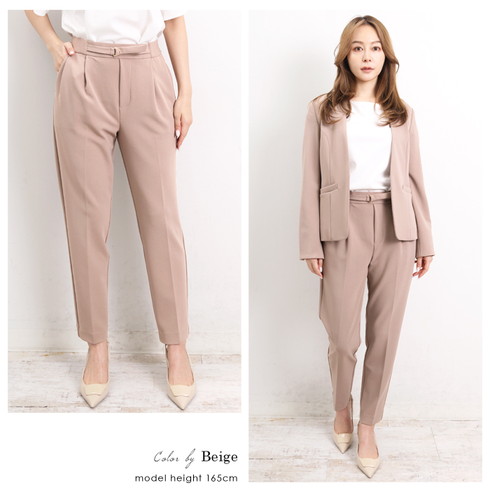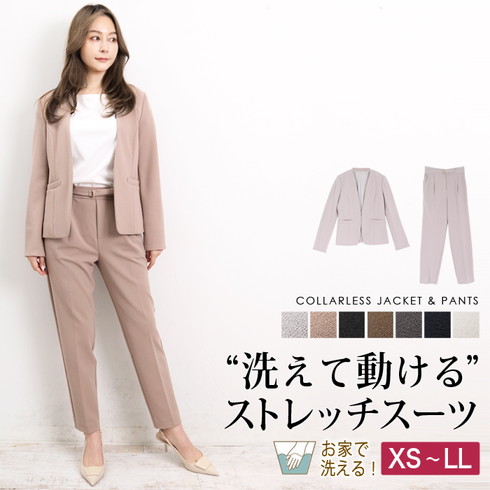 とっても伸びるストレッチ素材のパンツスーツのセットアップです。