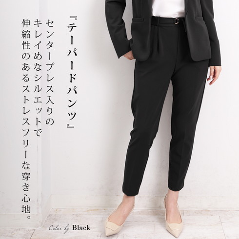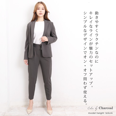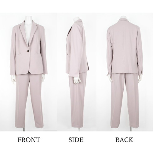 どんなシーンでも合わせやすい万能テーラードジャケットのパンツスーツです。