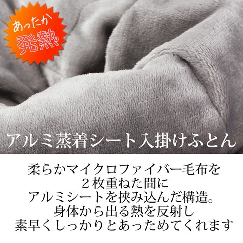 暖められた熱を逃がさないアルミシート入りで朝までしっかり暖かいお布団です。