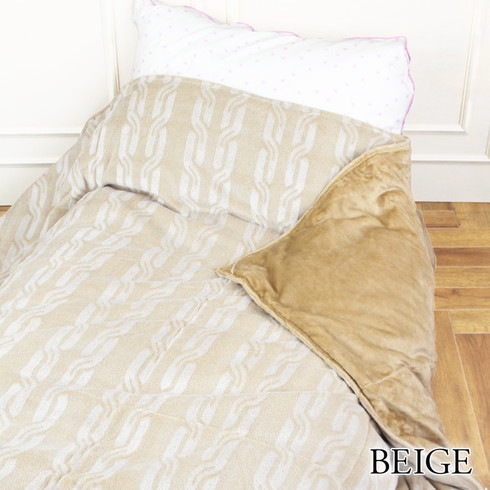 側地のマイクロファイバーの柔らかな毛布地には吸湿発熱素材を使用。
