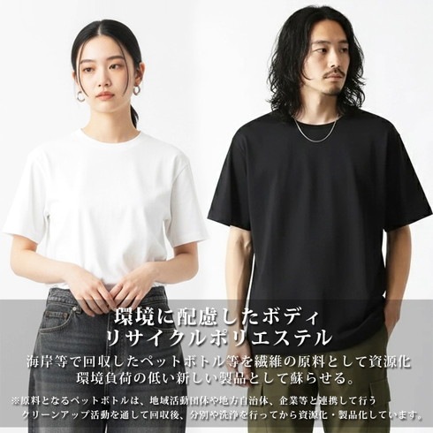 環境に配慮したリサイクルポリエステルを使用したTシャツです。