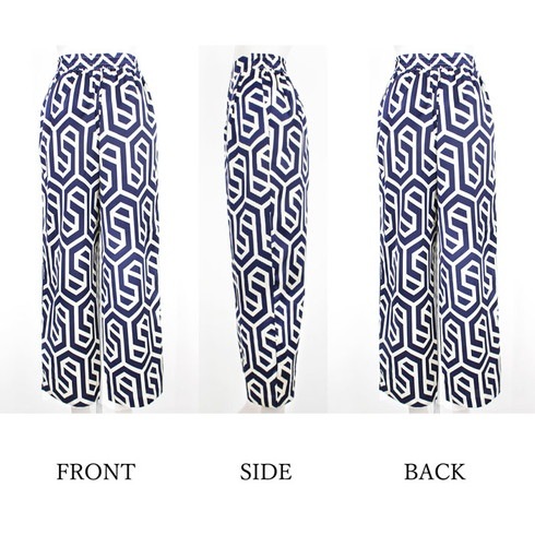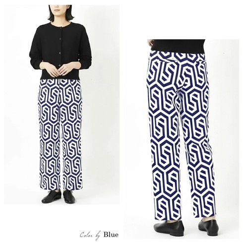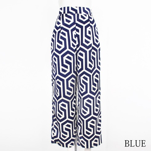 大柄プリントが映えるジオメプリントのワイドパンツです。