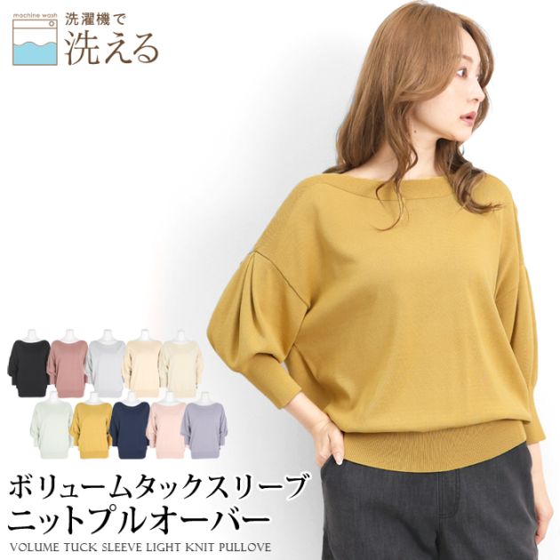 訳あり ニット 半袖 ボートネック レーヨン混 バルーン袖●レディース トップス 無地 シンプル ピンク マスタード ミント ネイビー ダスティピンク パープル ブラック グレー アイボリー ベージュ[11701]